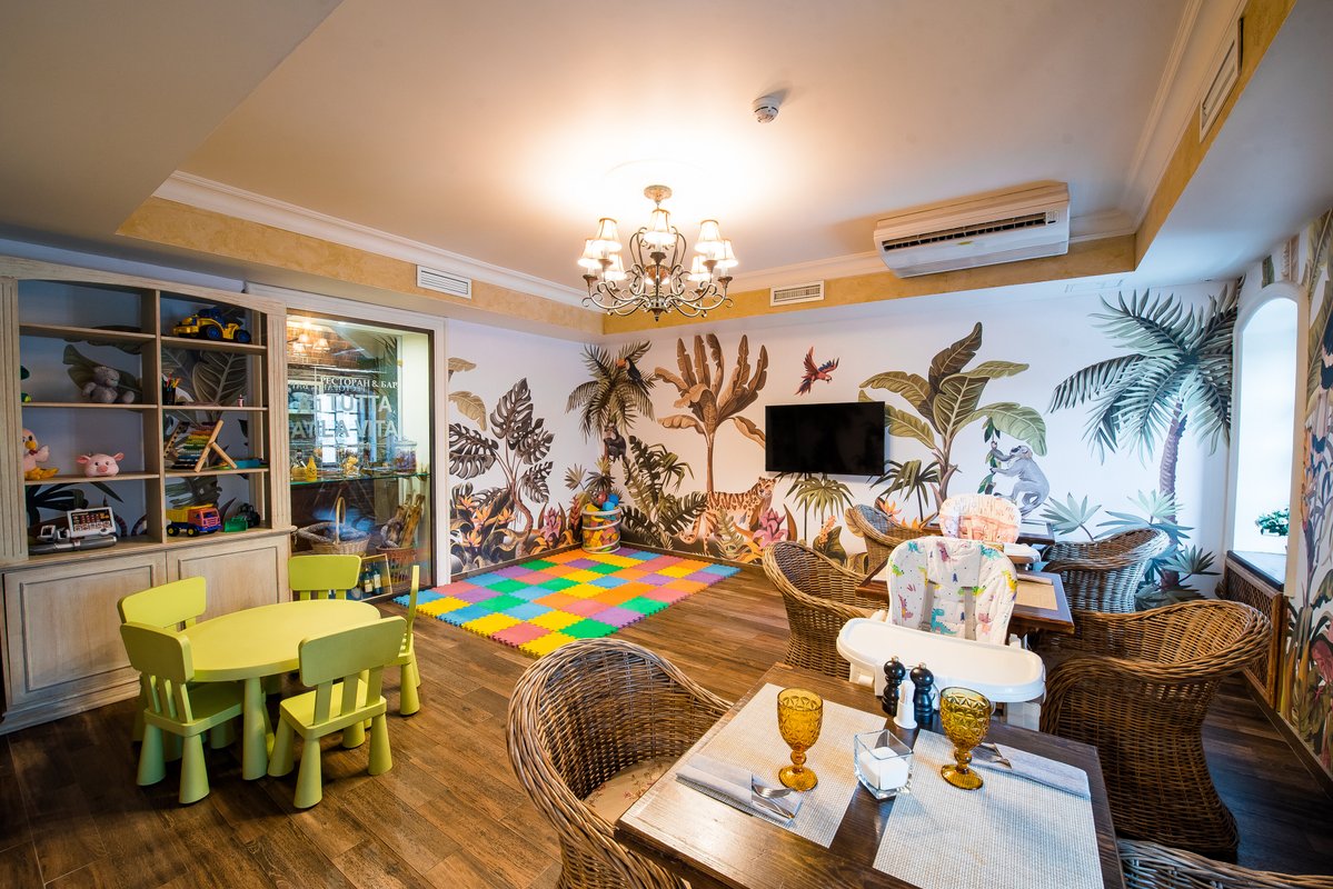 Удобно, что народу не было. В ресторане еда вкусная. Нравится, что детская комната изолирована, ребенок не ходит по залу - это прекрасно.