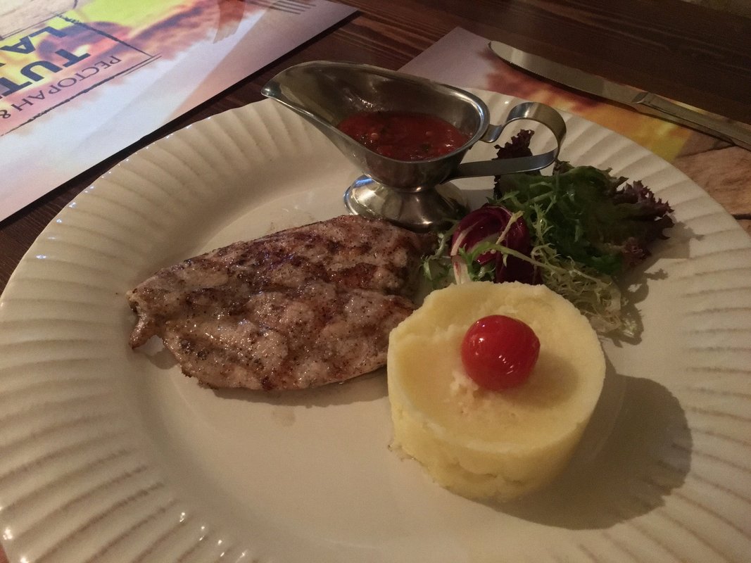 Все очень вкусно и хорошо. Я ела салат какой-то с лососем, отбивную из курицы. В ресторане хорошая атмосфера. Прихожу в заведение часто.
