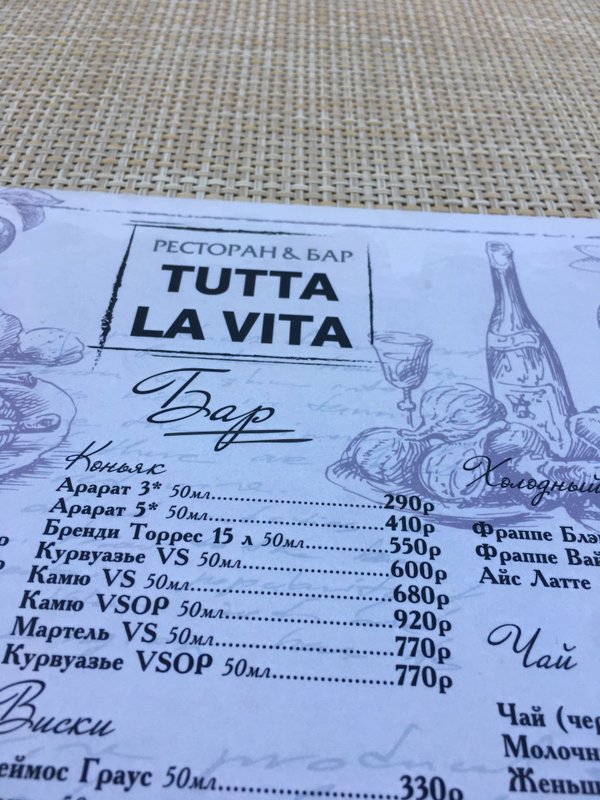 Был впервые в Tutta la Vita. Веранда понравилась и живые концерты. Ребята быстро обслуживали. Давали дельные рекомендации по напиткам.