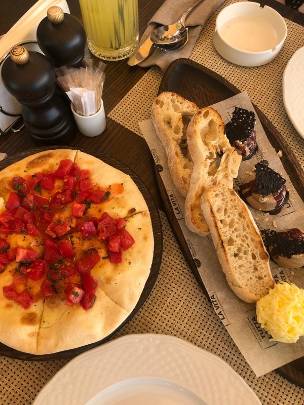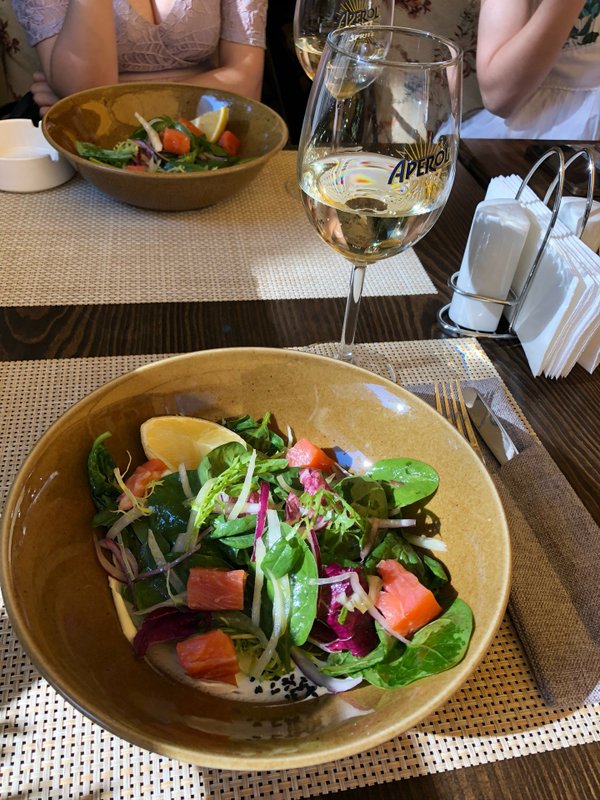 В ресторане нам было уютно и хорошо. Еда была вкусной, официант был вежливый и ненавязчивый. Томатный супчик был потрясающий, и брускетты с помидорами тоже отменные. Остальные девочки сказали, что и у них все было вкусно.